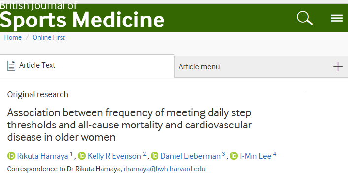 终端发现,相较于每周莫得一天达到4000步的受试者,每周1~2天达到4000步与全因物化风险下落26%、心血管疾病风险下落27%关联。如若每周有3天以上>4000步,风险则会下落40%、27%。